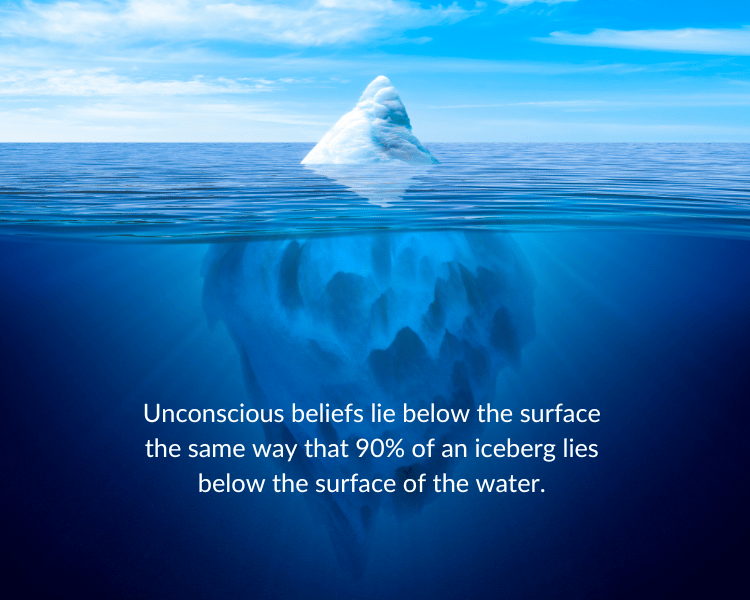 Quick check-in: How do you start to uncover your unconscious beliefs (the portion of the iceberg that lies beneath the surface)?